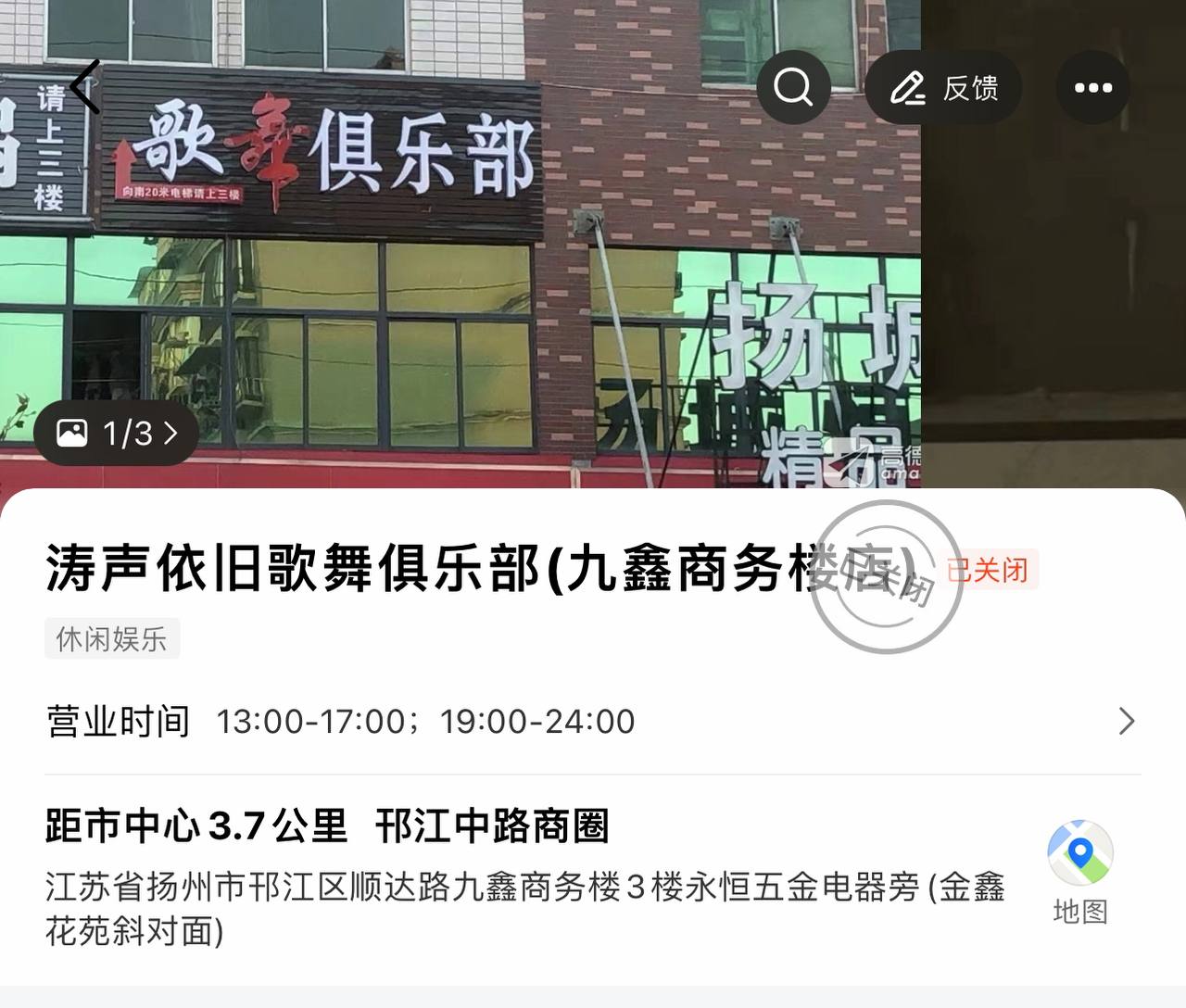 高德到涛声依旧舞厅,到地方后上三楼,下午在扬州万达对面的一条...